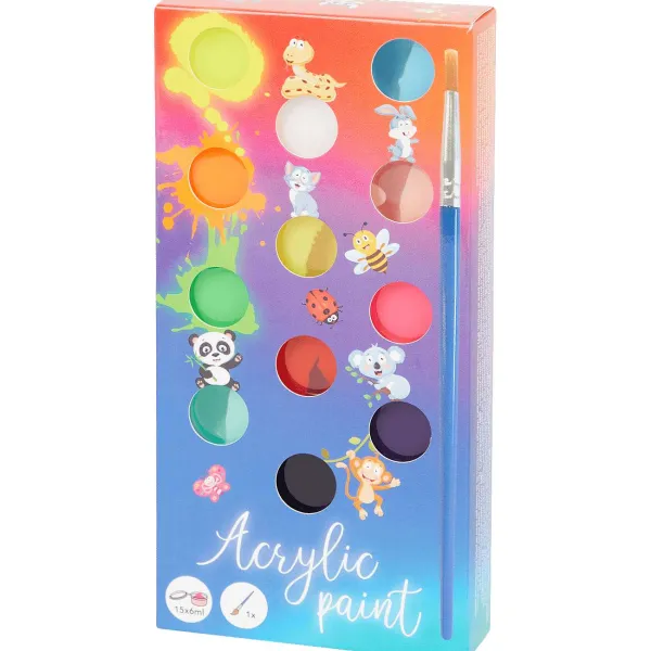 - 15 Verschillende Kleuren Acrylverf Inclusief 1 Penseel